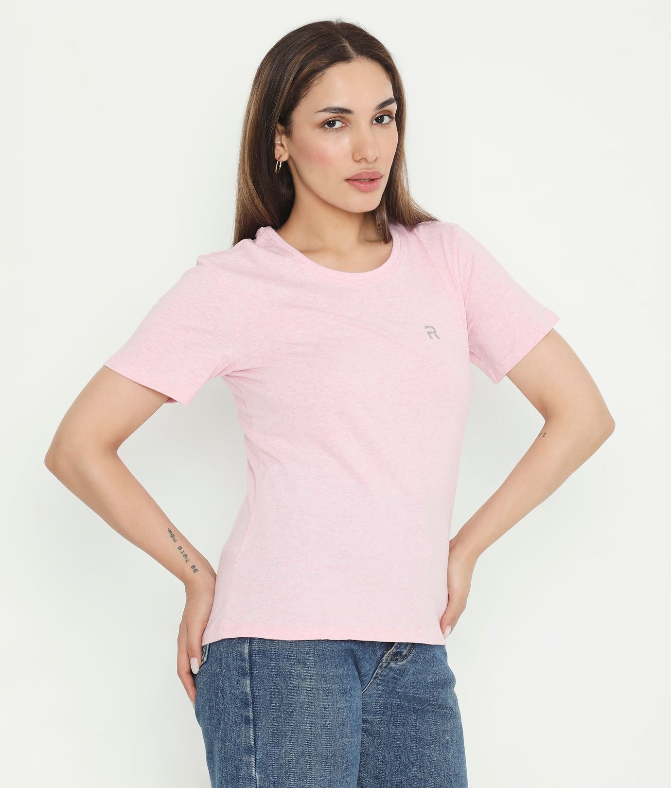 Rivolta Pink Melange Essential Cotton T-Shirt For Women