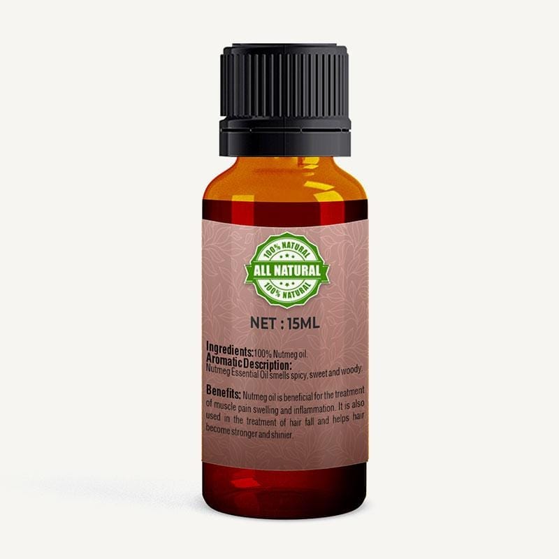 Nutmeg Oil smell has a spicy, sweet, revitalizing smell. nutmeg oil reduces your joint pain, common cold, lung problem. it will improve your elevated mood & menstrual cycles.