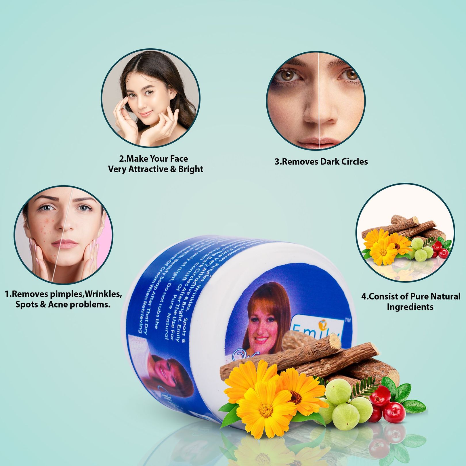 Emily's Intensive Skin Brightening Night Cream gives you the brightest glow by lightening your skin tone and stimulating new skin cells. This skin brightening fairness night cream can be used to reduce complexion imperfections like acne, pimples, pimple marks, under-eye dark circles, pigmentation, dark tone and dark dead skin cell accumulation. Melanin Night Cream for Women reduces melanin production and restores fair skin.