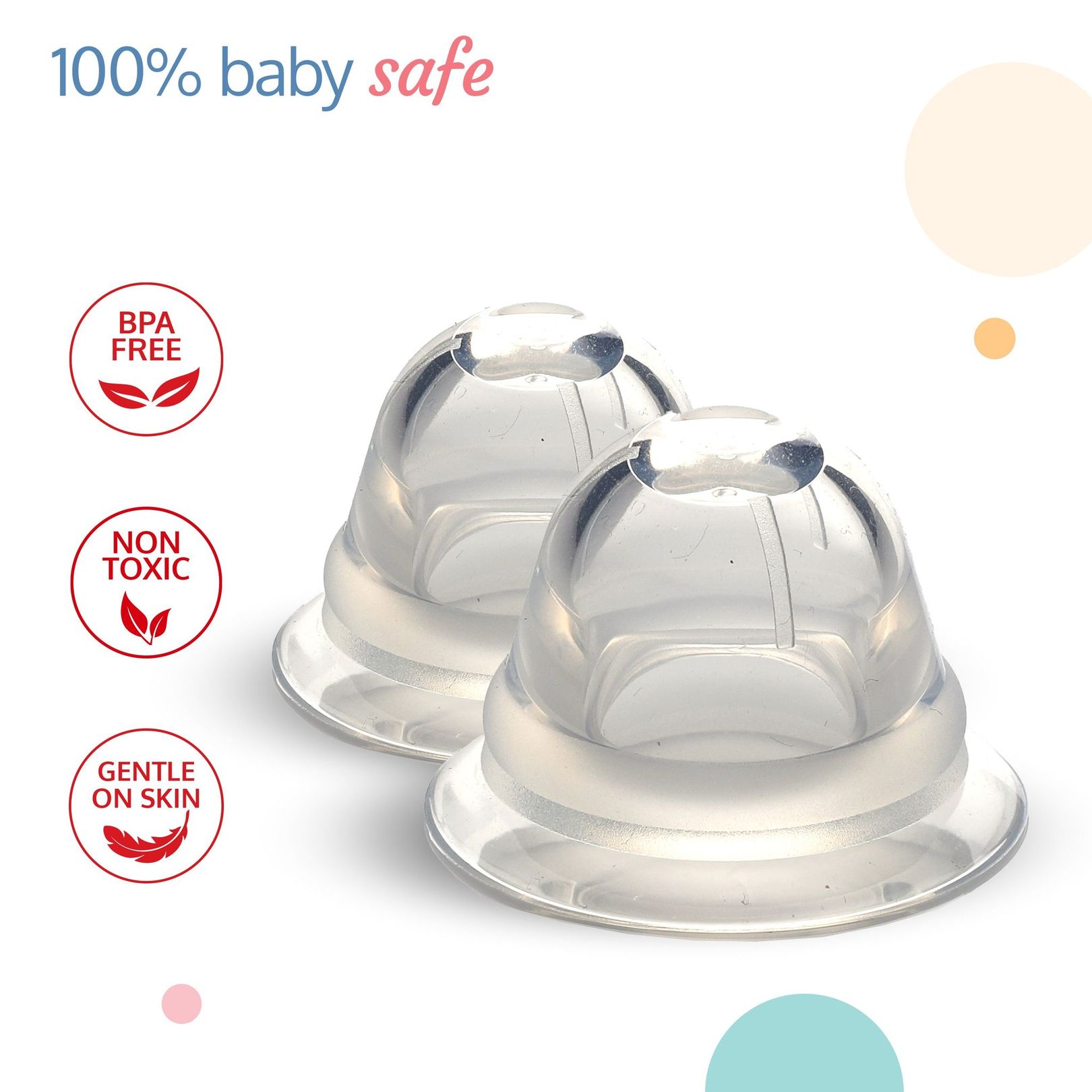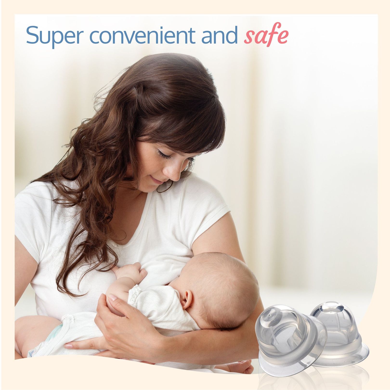 Nipple puller helps to draw out inverted nipples making it easier for baby to latch on. It gently draws out inverted or flat nipples making it easier for baby s mouth to create contact and suckle on. Made with 100 percent soft silicone, it works without causing any pain. Nipples may stay protruding for up to a couple of hours. You may need to use the puller every time before feeding the baby.