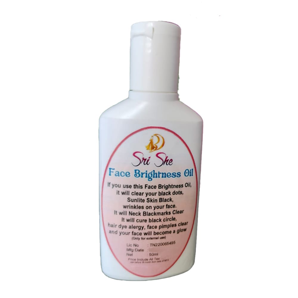 If you use this Face Brightness Oil, it will clear your black dots, Sunlite Skin Black, wrinkles on your face. It will Neck Black Marks Clear It will cure black circle, hair dye alergy, face pimples clear and your face will become a glow