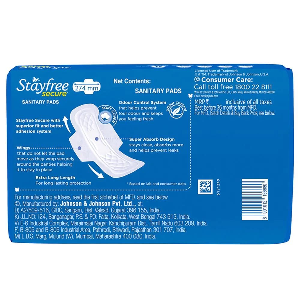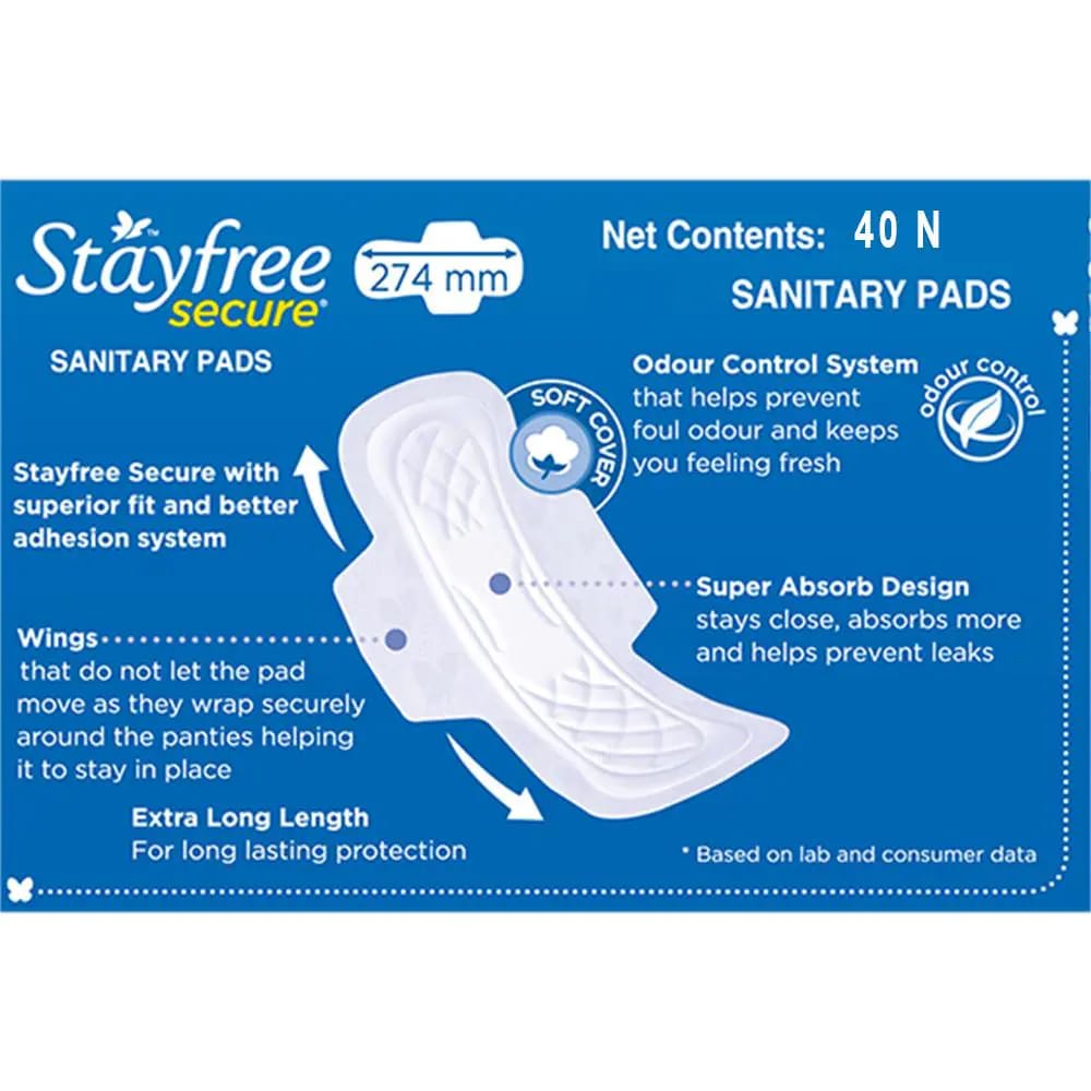 With your days full of things which you want to do, periods should be the last thing on your mind. With the Best Ever Stayfree Secure Cottony XL, you get long lasting protection from leakage and locks in wetness for up to 12 hours, so that you don t have to stop. These Extra large pads provide extra protection and the LeakLock technology helps absorbs 2x faster so you don t feel wet. The Stayfree Secure Cottony XL pads have a cottony cover that is gentle on your skin and helps prevent rashes. The odour control system keeps you feeling fresh. Do away with the icky icky wet feeling with the Stayfree Secure Cottony XL pads now!