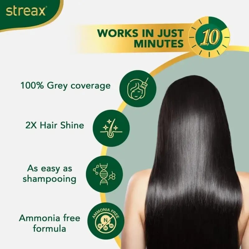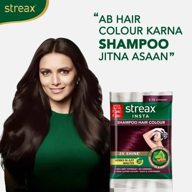 Get salon-like results at home ? fast, simple, and affordable with Streax Insta Shampoo Hair Colour.