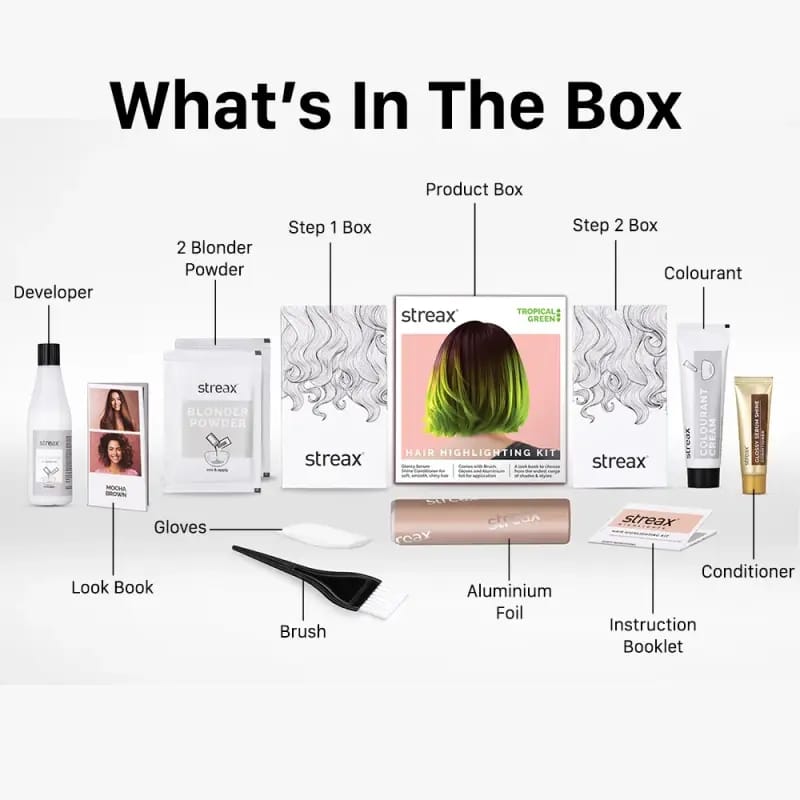 Transform your hair with radiant, salon-like highlights at home using the Streax Ultralight Hair Highlighting Kit. Specially crafted for easy application and stunning results, this kit lets you create trendy highlights with minimal effort.