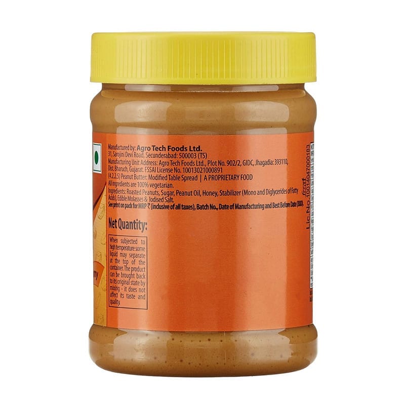 Roasted Peanuts (90%), Sugar, Edible Vegetable Oil, Honey, Stabilizer, and Iodized Salt.