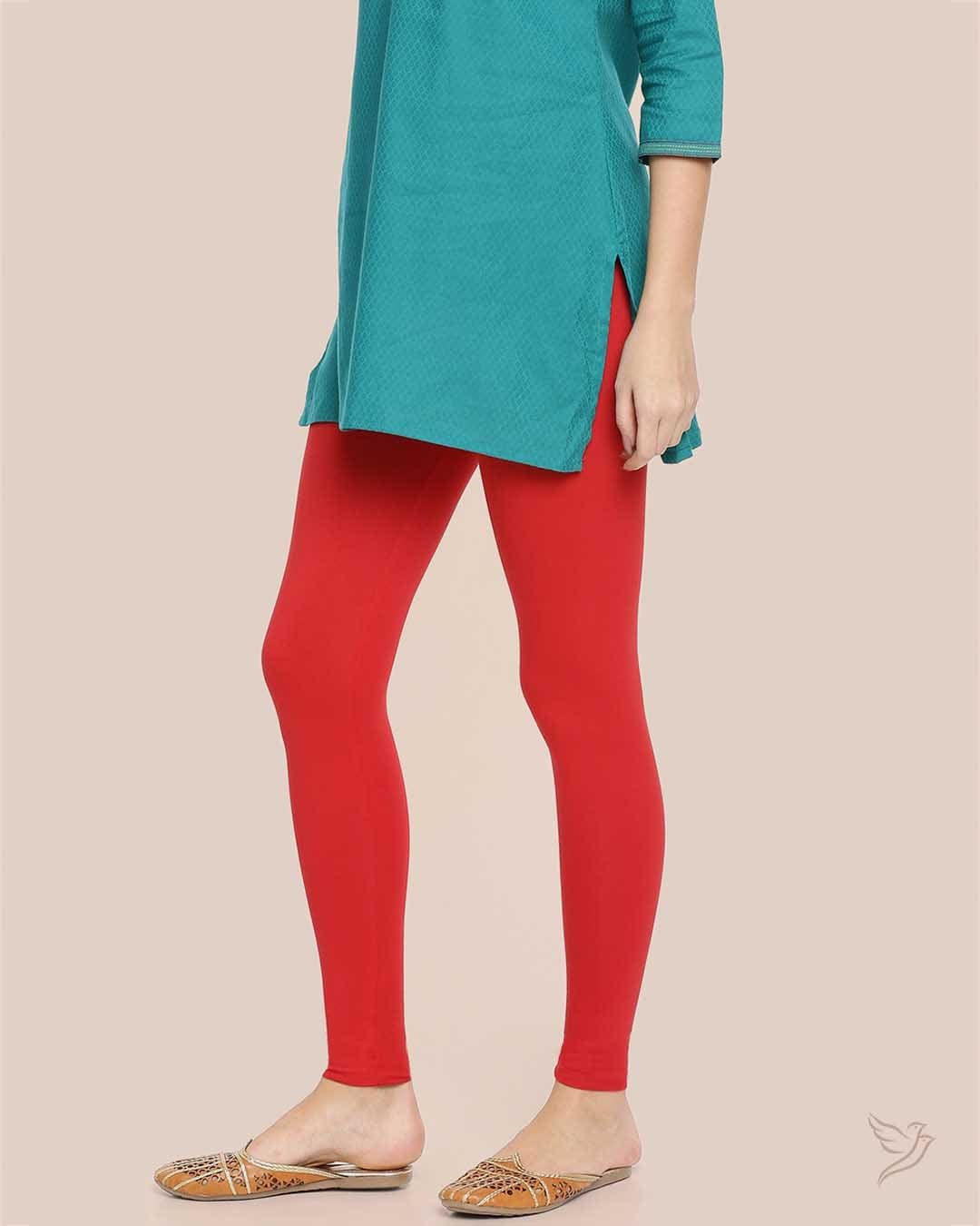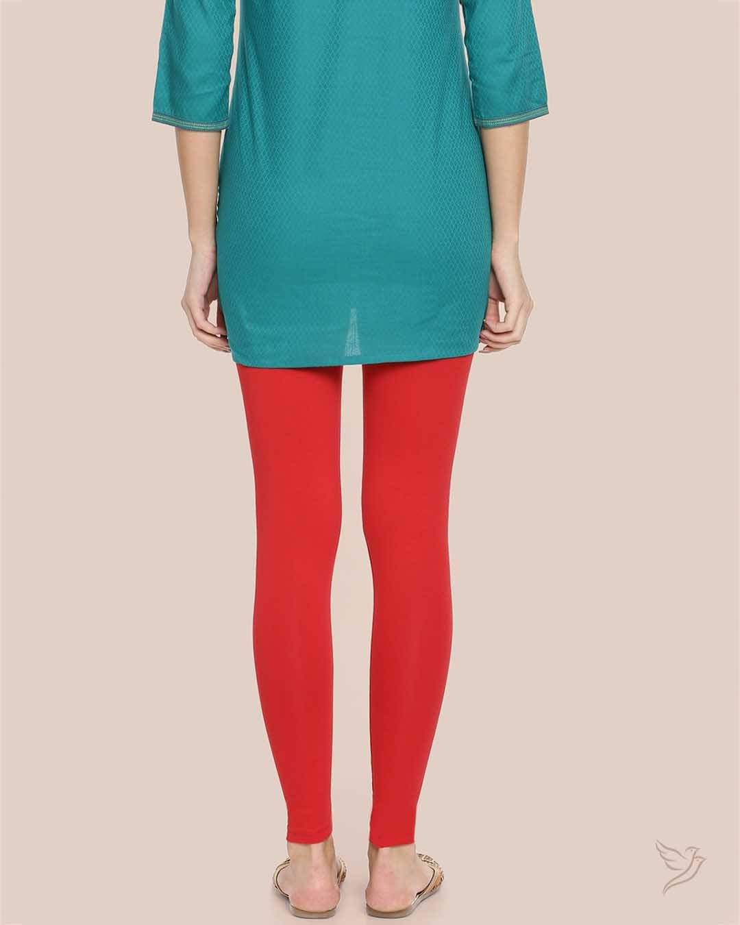 Twin Birds Women Cotton Ankle Legging - Red Chilli