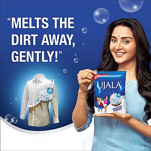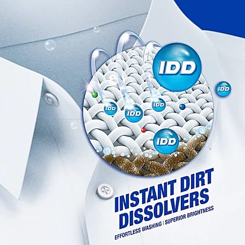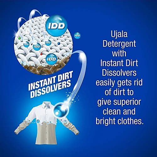 Ujala Detergent Instant Dirt Dissolvers is specially formulated to fight even the toughest stains instantly. With its quick-dissolving action and powerful cleaning agents, it penetrates deep into fabric fibers to remove dirt, grime, and sweat marks effortlessly.