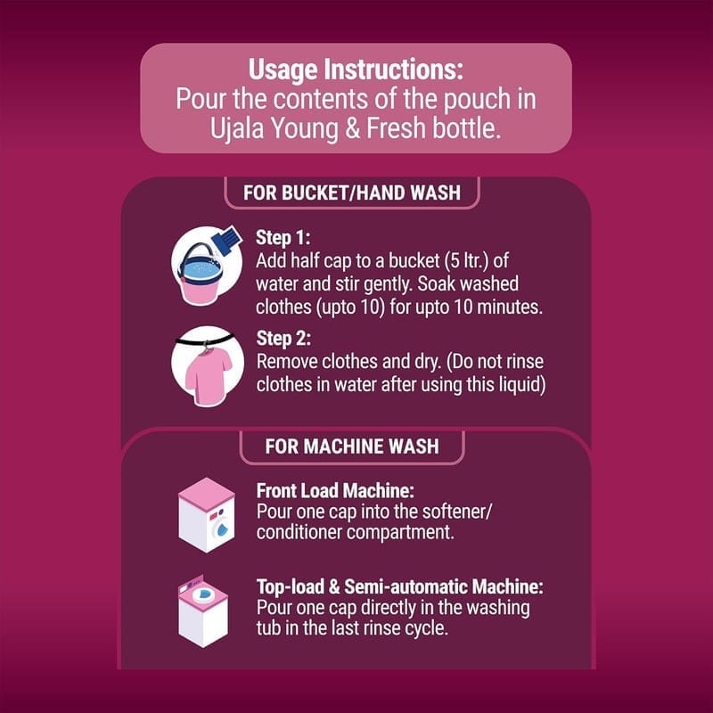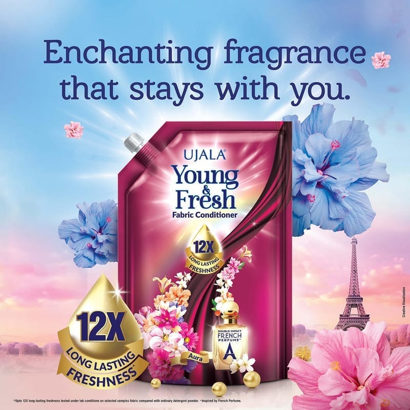 Give your laundry the care it deserves with Ujala Young & Fresh Fabric Conditioner Aura where softness meets fragrance in every wash.