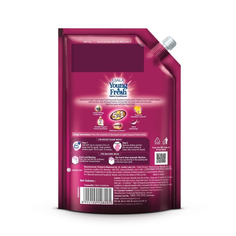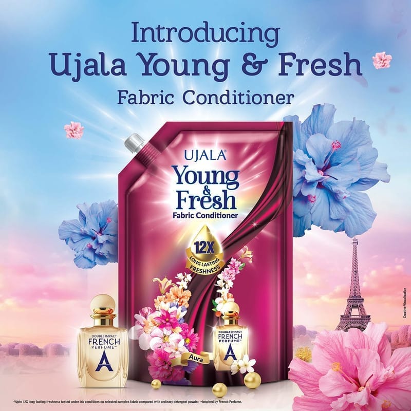 Experience long-lasting freshness with Ujala Young & Fresh Fabric Conditioner Aura, designed to give your clothes a rejuvenating scent and ultra-soft feel after every wash.