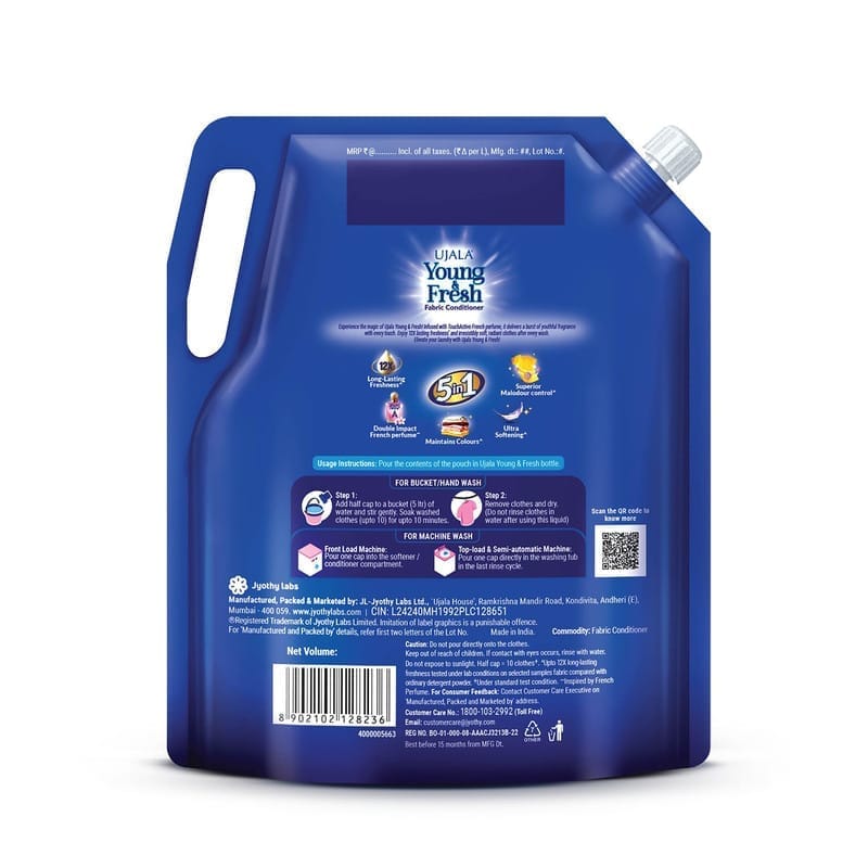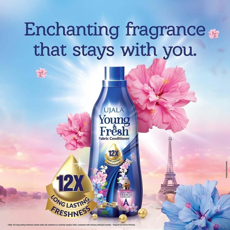 Experience the long-lasting freshness of Ujala Young & Fresh Fabric Conditioner Bliss your perfect laundry companion for soft, fragrant, and revitalized clothes.