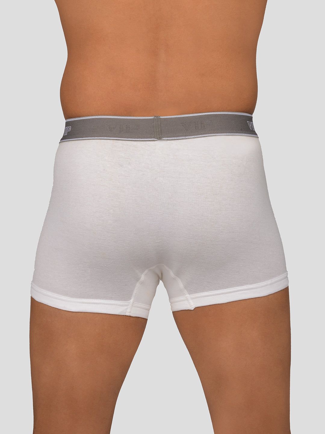 The VIP Regal Collection Men's White Trunk offers unbeatable comfort and style. Made with soft, breathable Cotton Rib fabric, these trunks are perfect for any occasion. The stylish contrast color elasticized waistband adds a touch of flair. Say goodbye to discomfort and hello to a luxurious feel on your skin.