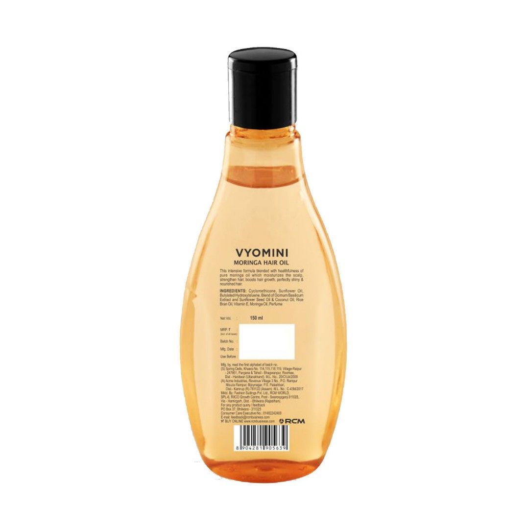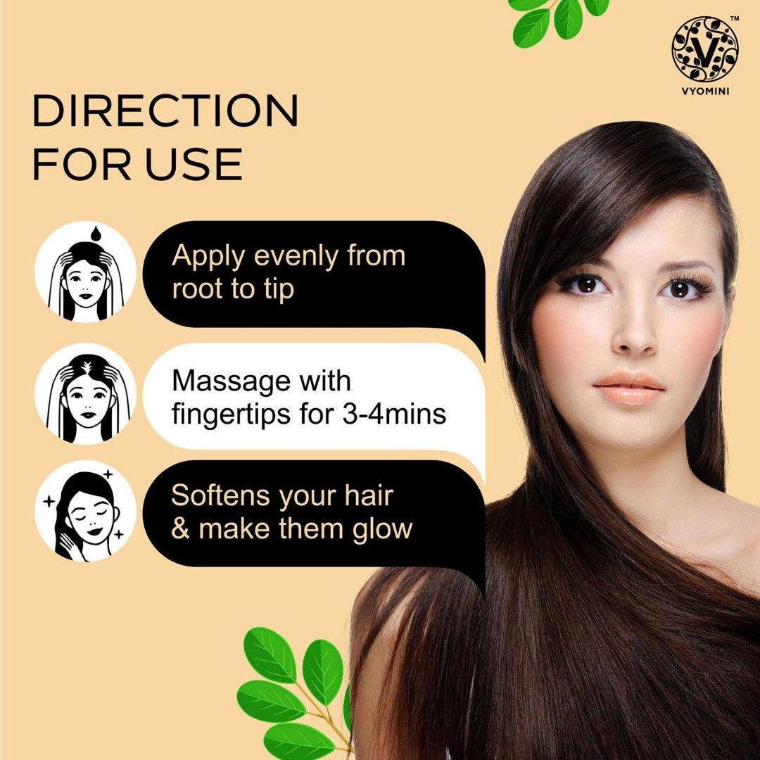 The Vyomini Hair Oil is here to unlock the shine of your hair with natural nourishment! Make this hair oil a part of your daily routine to boost hair growth and scalp health. This intensive formula is blended with pure Moringa oil, sunflower, rice bran oil, vitamin E, and RootBioTec™ (a blend of basil, coconut & sunflower oil). It helps you to regain fuller and denser hair and reduces hair loss by stimulating the dermal papilla cells in hair follicles.