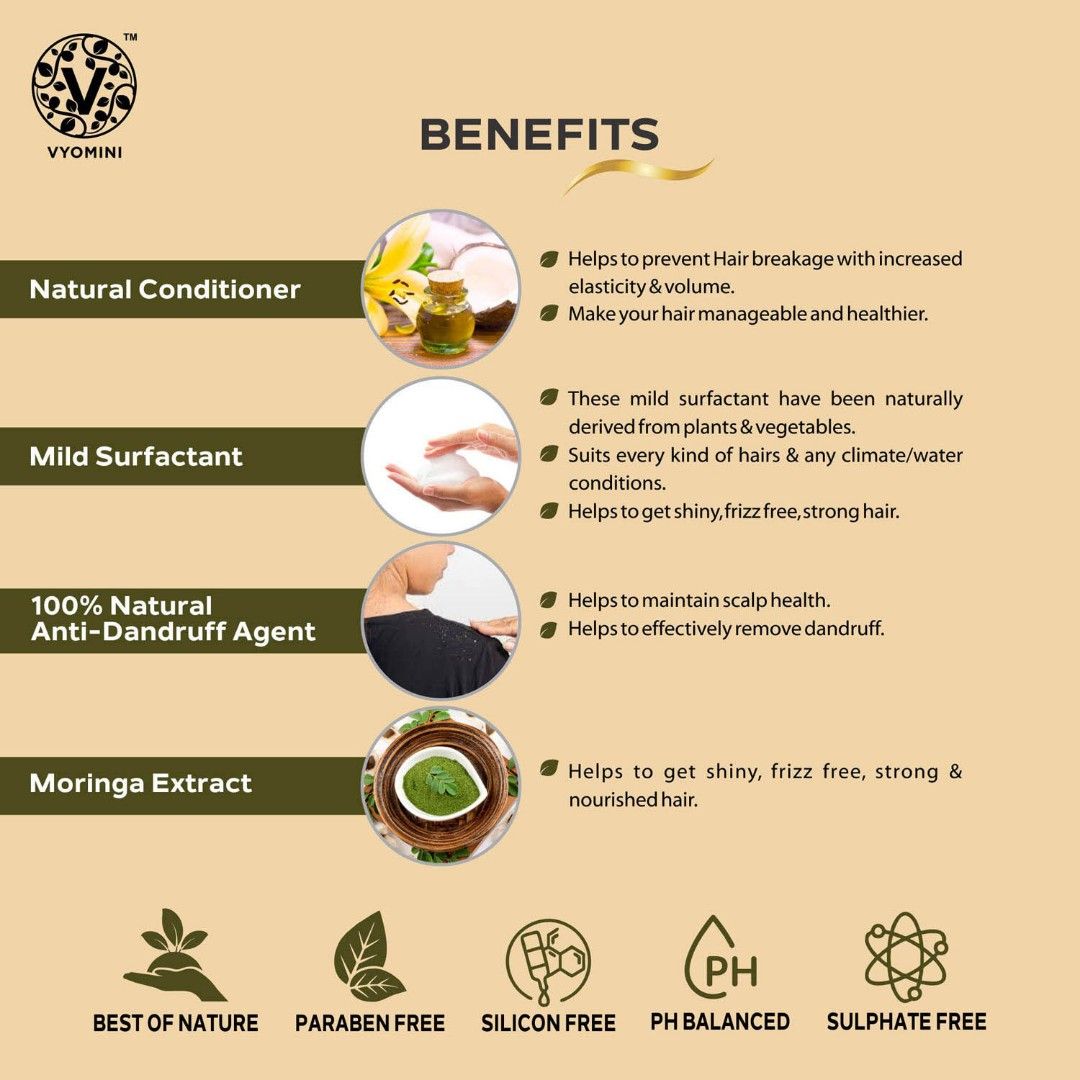 Healthy hair is the dream that you can come true! Yes, the Vyomini Moringa Shampoo is the perfect natural solution for strong, silky, and frizz-free hair.