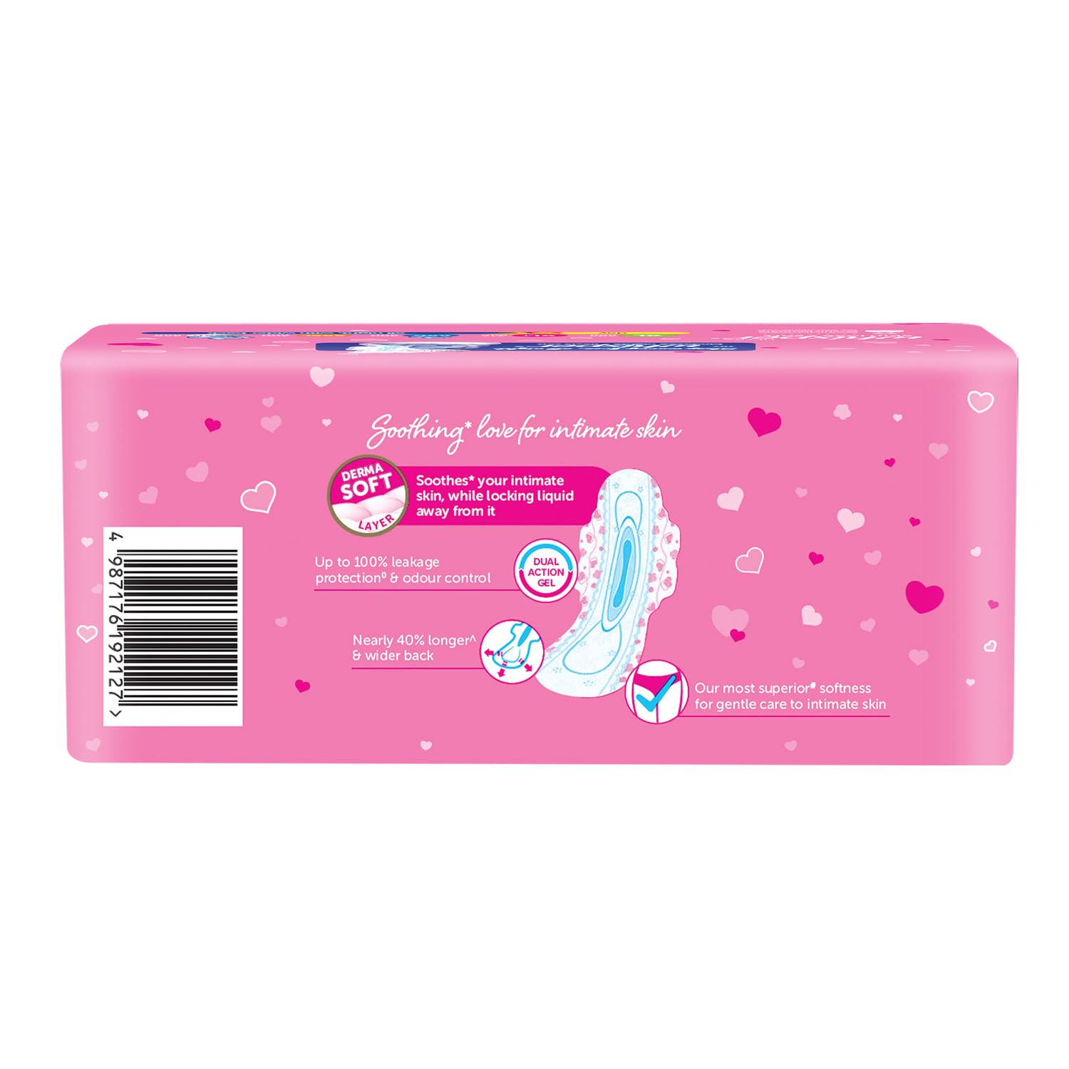 These pads are nearly 20% longer and have soft pores that drive liquid to the core and lock it away, so you have extra coverage and long-lasting protection.