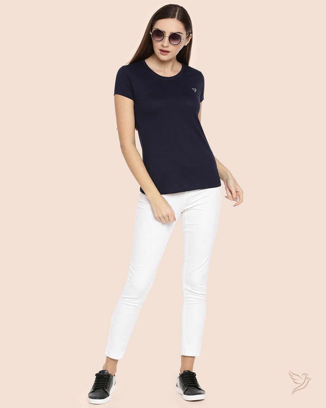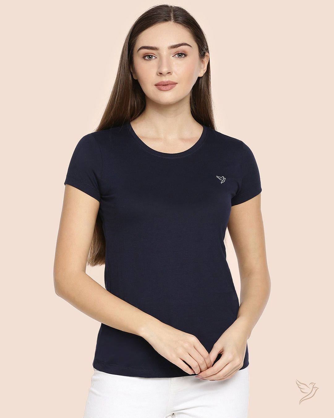 Twin Birds Women Slim Fit T Shirt Navy Ribbon