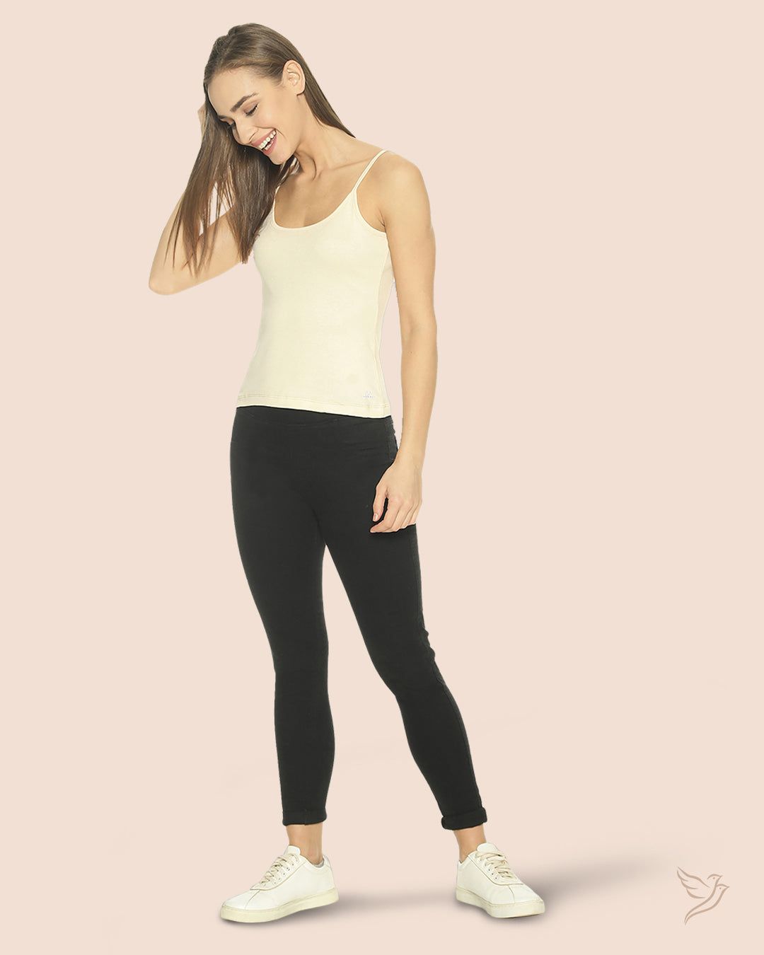 Versatile top with narrow spaghetti straps and adjusters to get the perfect fit and comfort Wide scoop neck at front and back, compliments all outer wear Slightly tailored cut and styled to hug your body leaving no marks on your tender skin Super soft 100TW-CL-553