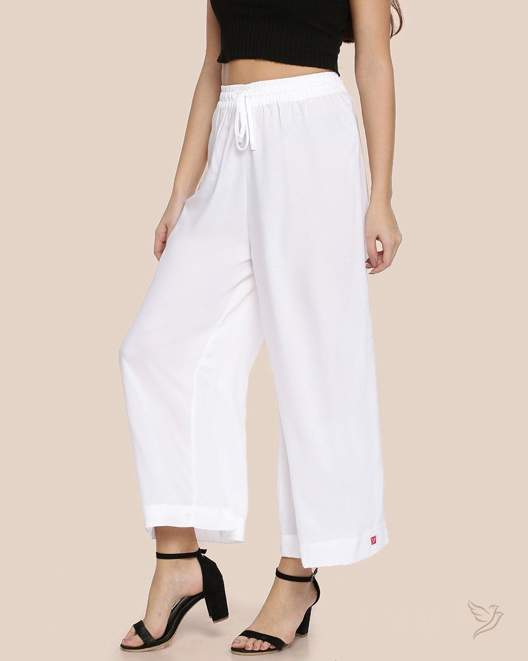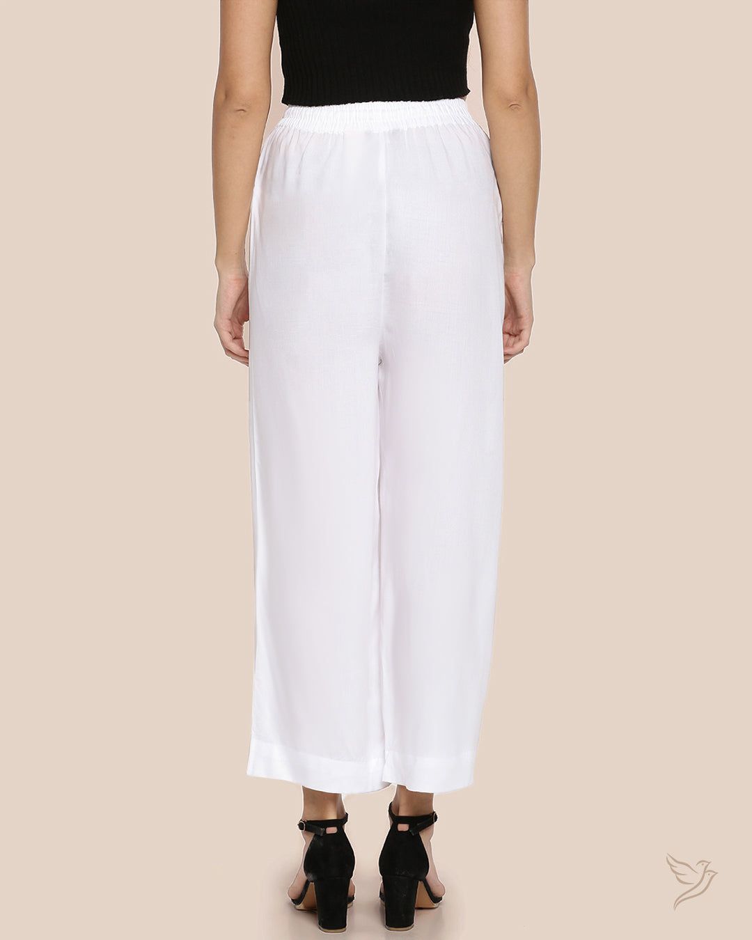 Twin Birds Women Wide Leg Palazzo Pearl White