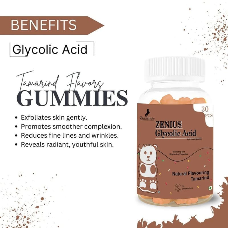 Zenius Glycolic Acid Tamarind Gummies are a unique fusion of skincare and wellness, designed to enhance your natural radiance from the inside out. Infused with glycolic acid a potent alpha hydroxy acid (AHA) and the antioxidant-rich power of tamarind, these delicious gummies help rejuvenate your skin, support cell turnover, and promote a more even complexion.