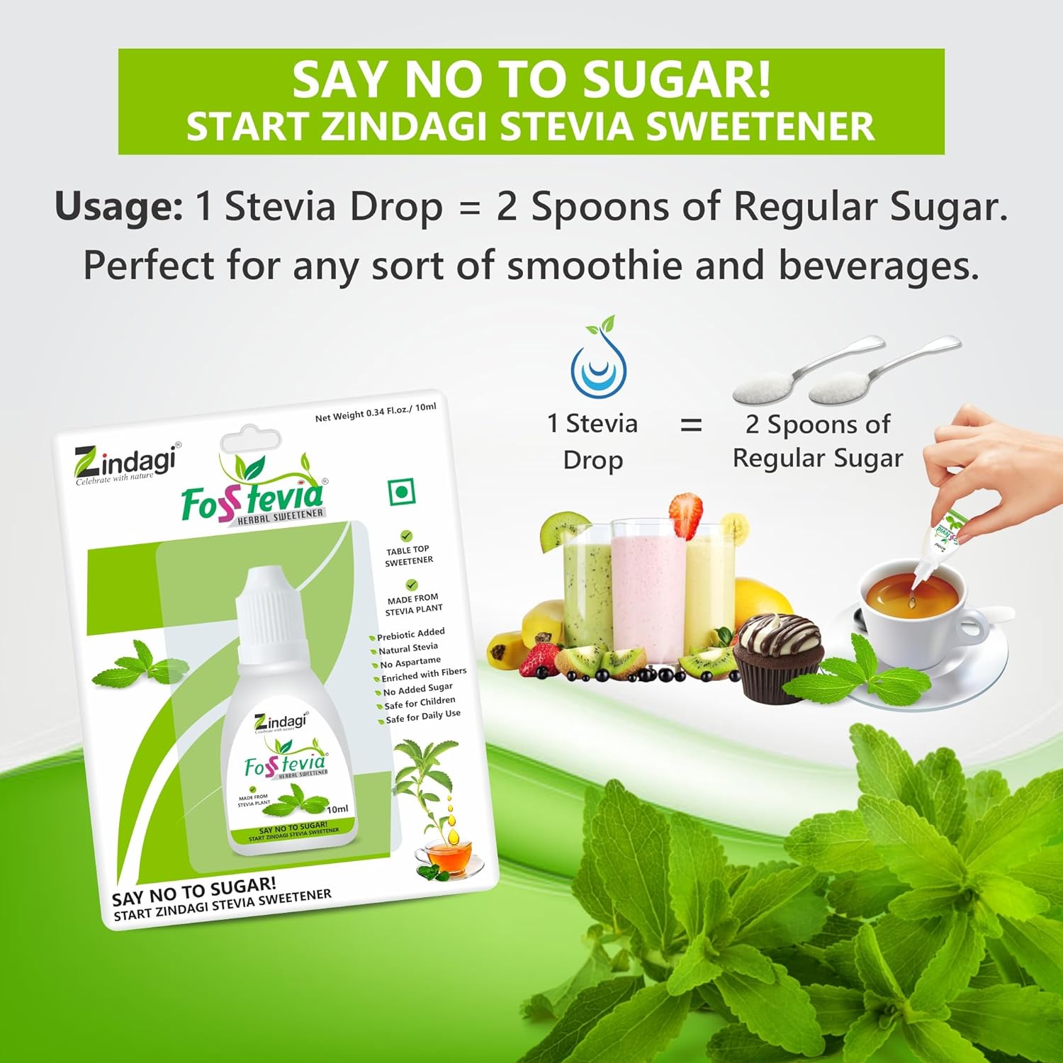 Zindagi Stevia Liquid Drops is a natural sweetener extracted from stevia leaves. It is helpful to people preferring a vegan Sugar diet. It does not have any calorific value. It tastes sweeter than sugar. You can add Stevia Drops to your morning tea, coffee, desserts, and other beverages. It is an excellent choice for patients suffering from chronic diseases like diabetes, hypertension, and obesity. Zindagi Stevia Extract is free from chemicals and additives. Ideal for health-conscious people and those following Keto Sugar Diet. It comes in affordable pricing with 12 months of shelf life.