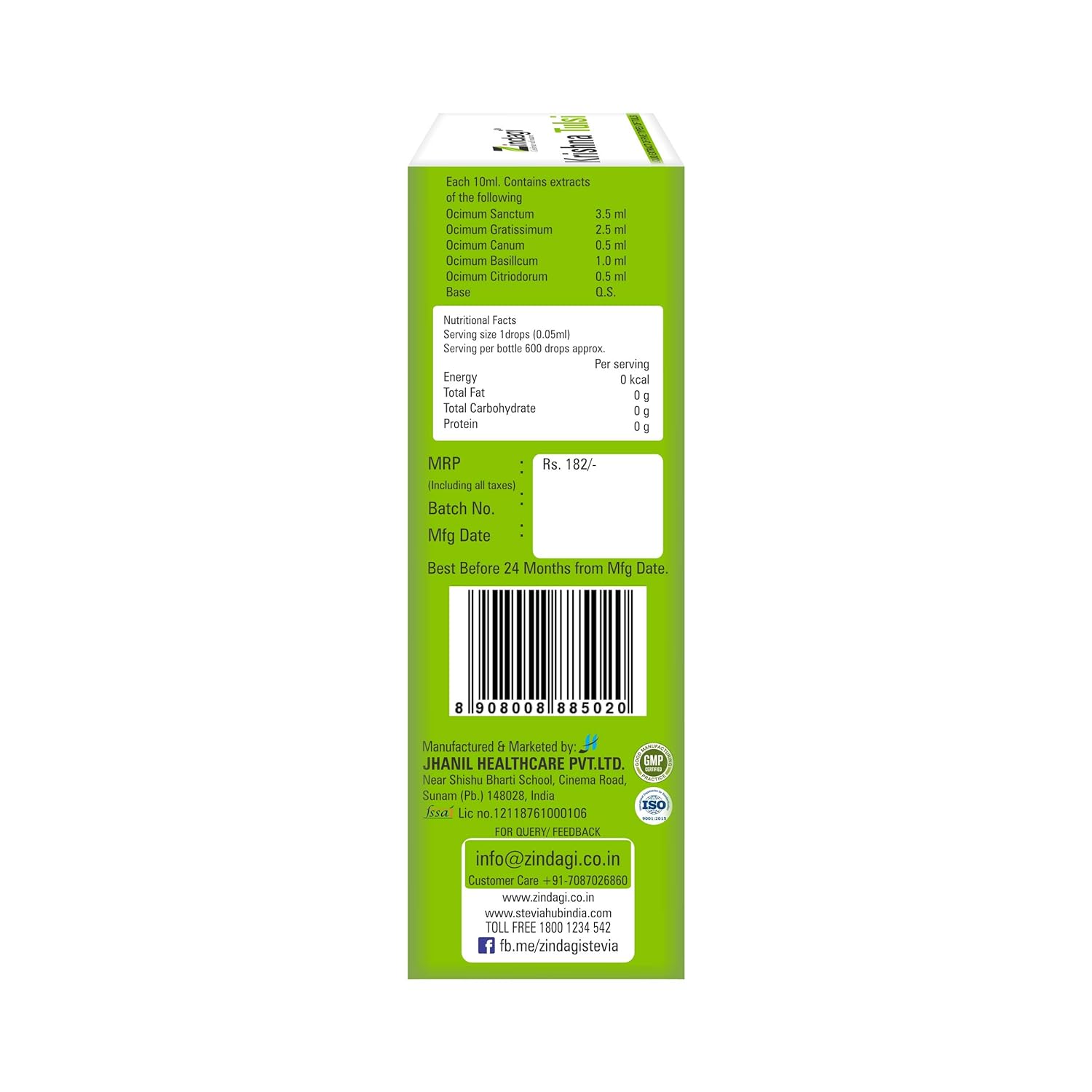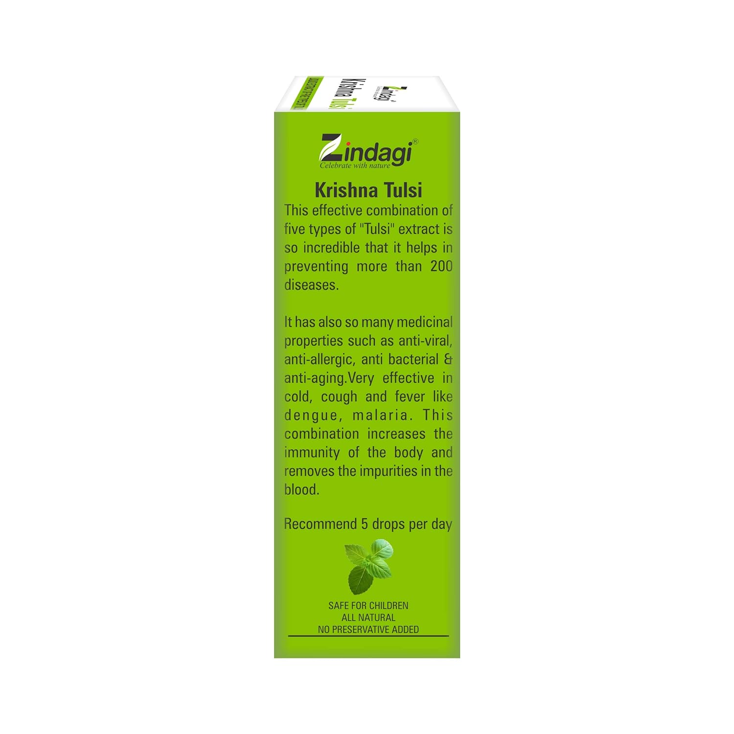 Zindagi Krishna Tulsi Ras contains five different types of tulsi extract. This natural tulsi liquid is in oil form. Zindagi tulsi pure extract has no chemical, no preservative. Krishna tulsi is a 100% pure, natural & concentrated. Material Feature: 100% vegetarian, Shelf life 24 months, Safe for daily use. Tulsi Ark is useful for every one. Tulsi Liquid contains no sugarKrishna_Drop_2